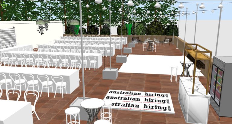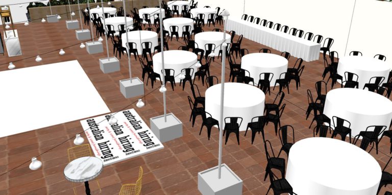 Visualise your event, brand activation or wedding with our 3D CAD software. Plans are to scale and can assist in working out flow and maximum seating.