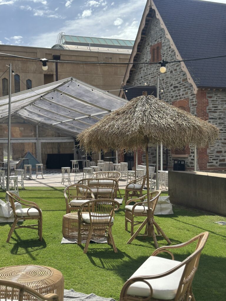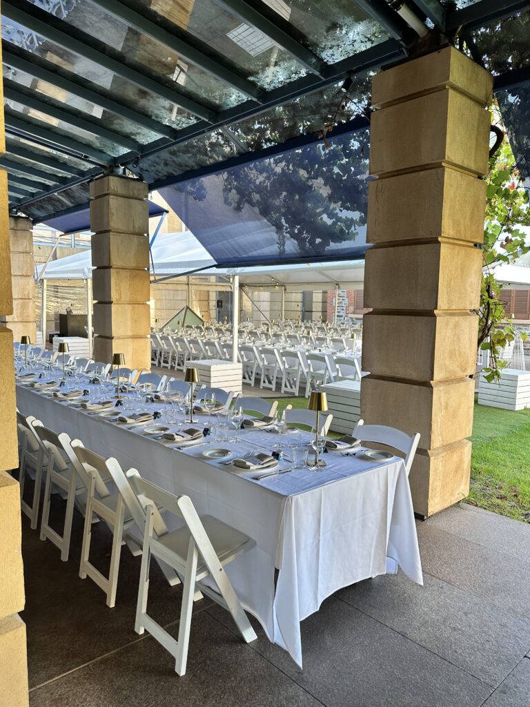 Staged in the AGSA Courtyard beneath a premium marquee by Australian Hiring Company. Furniture and lighting proudly supplied by Australian Hiring Company, Adelaide—delivering seamless style and functionality for unforgettable corporate occasions.