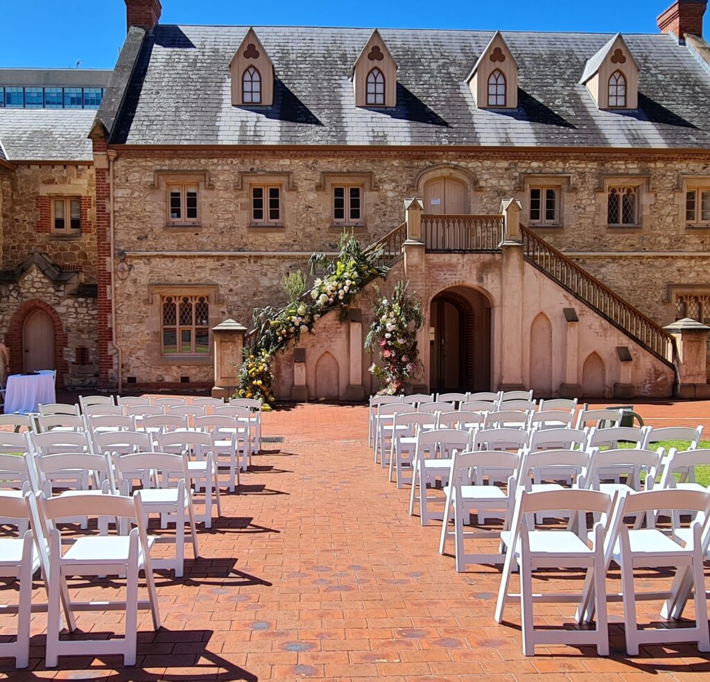 Wedding ceremonies held on the Middle Lawn complement your Reception on the Archway Lawns or in Mortlock Chambers.